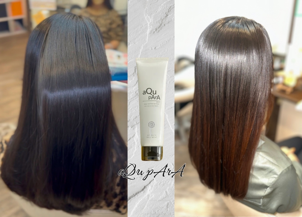 さくらんぼ大のaQu pArAを手のひらに出し、髪全体になじませ