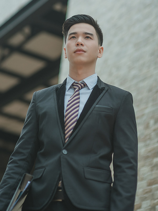 サイドを短くフェードで刈り上げ、トップはあえて少し長めに残すスタイル。トップから前髪にかけて直線的な流れを作りながらスタイリングするのがモダンスタイル。男らしく、ストリート系のファッションの方々に人気のスタイルですね。直毛でも癖毛でもオシャレに決まります。