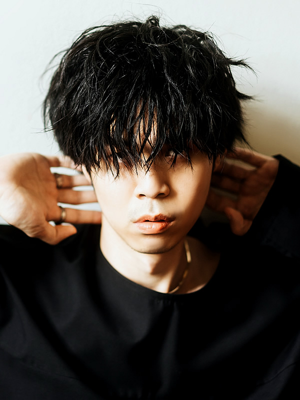 軽めな質感を演出する為に、髪に馴染みやすいマットタイプのワックスで仕上げています。全体を80%くらいでドライしたら、スタイリング剤を毛先から揉み込んでいく。トップ周辺は上から軽く掴んで持ち上げるようなイメージで、動きがわかりやすいシルエットを実現しています。