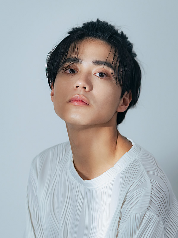 軽めな質感を演出する為に、髪に馴染みやすいマットタイプのワックスで仕上げています。全体を80%くらいでドライしたら、スタイリング剤を毛先から揉み込んでいく。トップ周辺は上から軽く掴んで持ち上げるようなイメージで、動きをつけすぎないシルエットを実現しています。