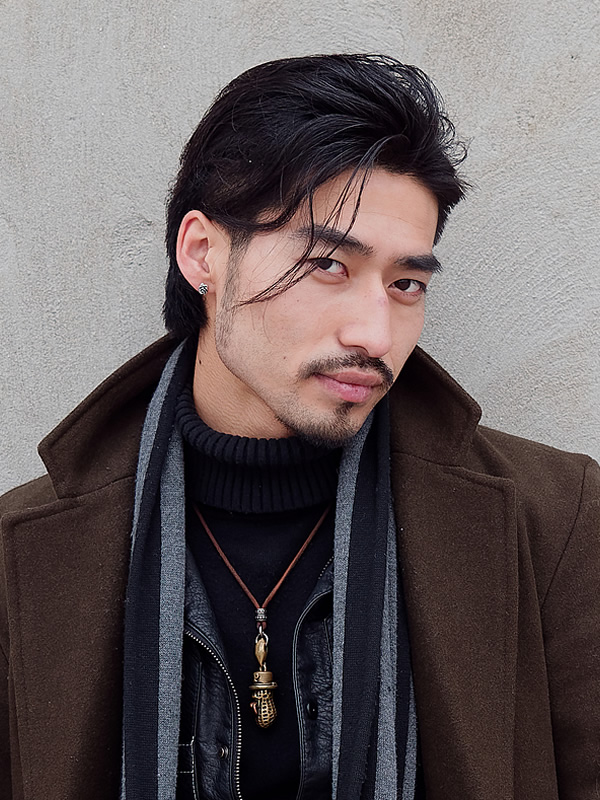 毛先に緩めのウェービーな動きを作り、ふんわりと優しいシルエットとモードっぽい印象を再現している。前髪はセンター分けにして軽やかさを追求するも良し、下ろしてアンニュイ感を高めてもバッチリ。今流行りのレトロっぽさが、お洒落メンズにハマるに違いない。